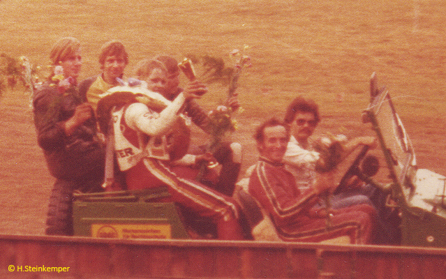 Hans-Werner Klaus, Sieger in der Int.Liz.Gruppe-B 1976 in Osnabrück, mit dabei v.lks. Hans von Weyhe, Günter Brackland und vorn Gottfried Schwarze.
